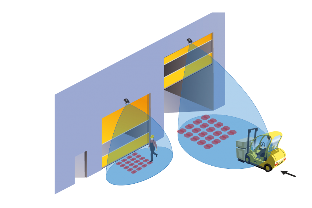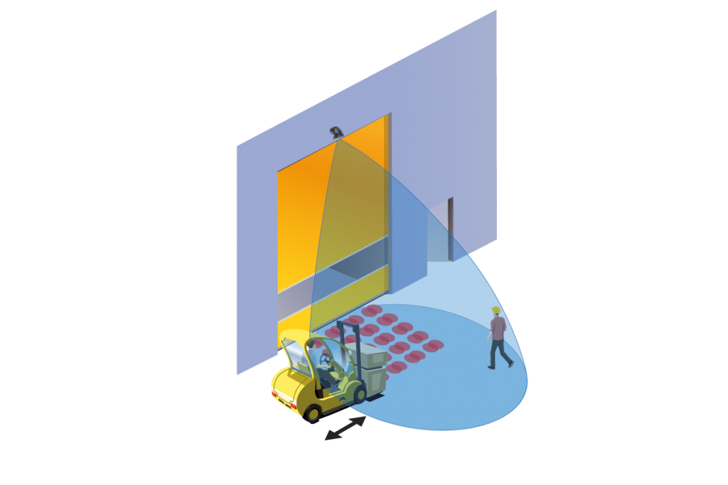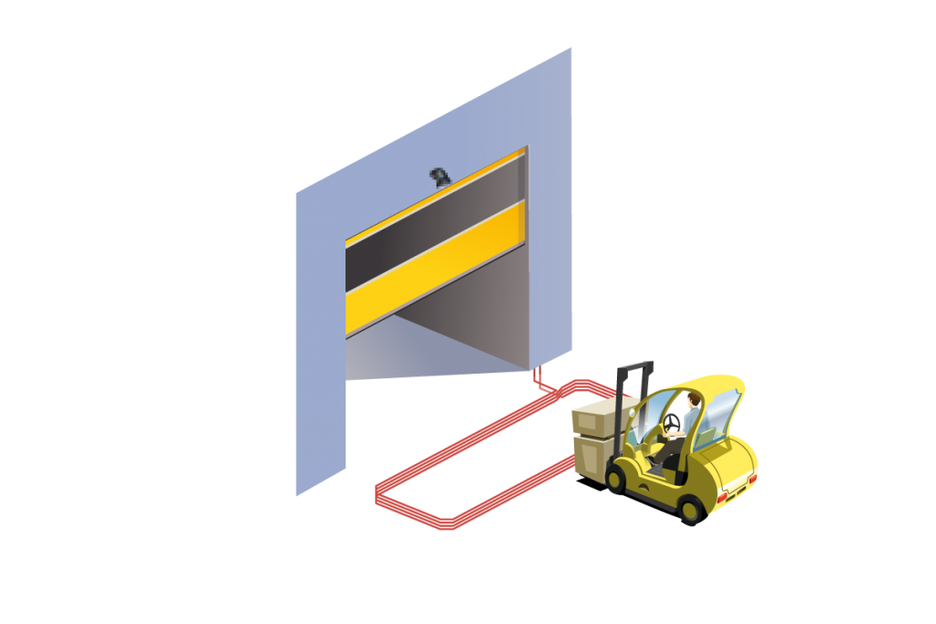 Upon the arrival of a forklift, another vehicle or a worker, the door opens and closes after a certain period of time.
